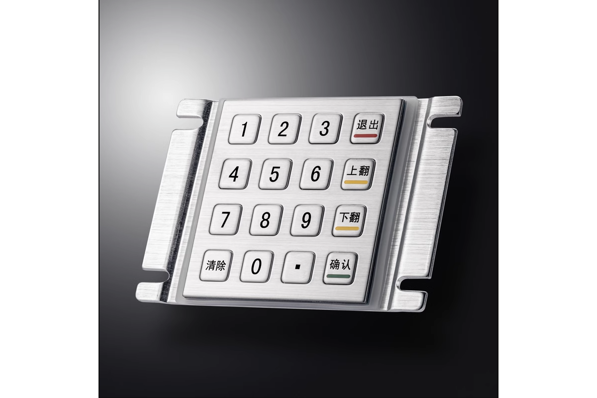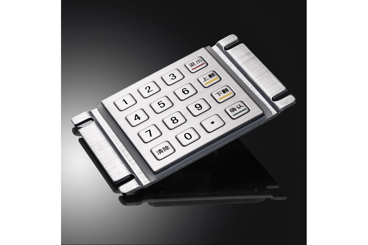 优质进口不锈钢冲压成型键盘,防水、防尘、防暴、防锈,按键字采用激光雕刻或化学腐蚀,防脱落