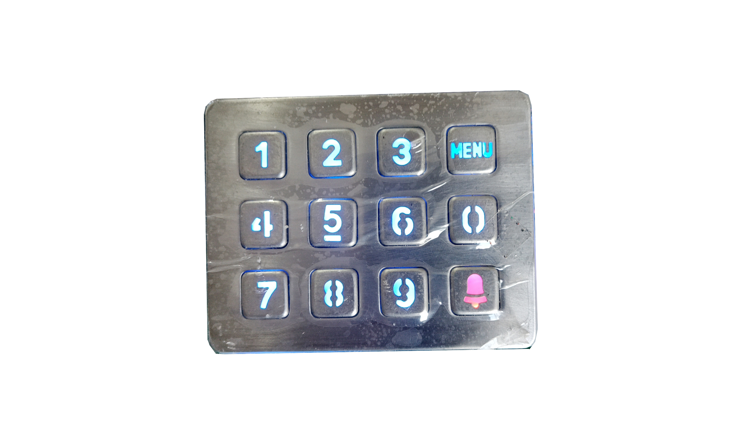 优质进口不锈钢冲压成型键盘,防水、防尘、防暴、防锈,按键字采用激光雕刻或化学腐蚀,防脱落