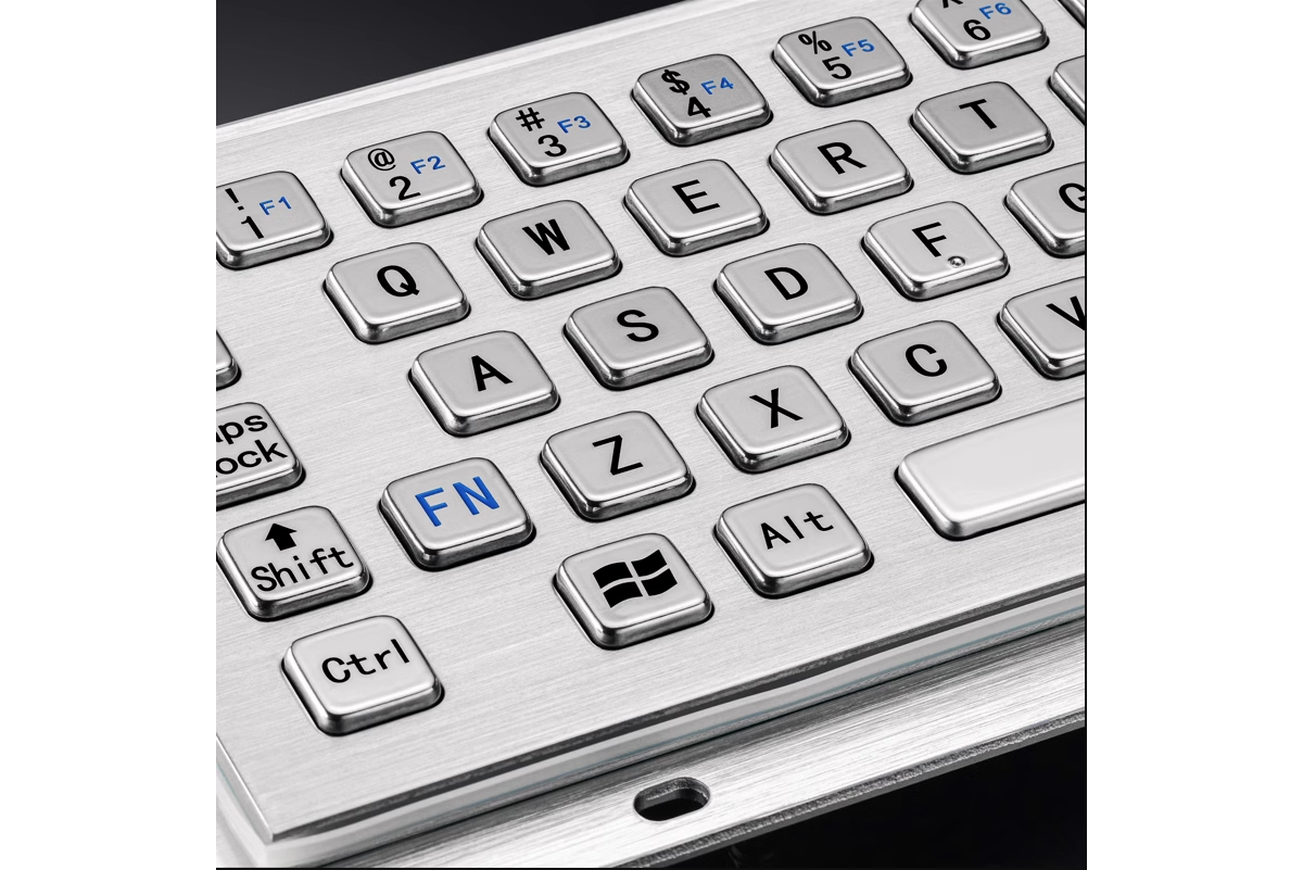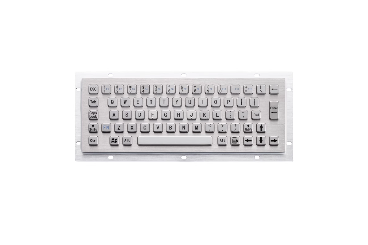 产品特征 | 键盘结构上达IP66防尘防水功能,防腐蚀,防暴,防撬,防止故意破坏,特别是在恶劣环境下,也可正常工作;键盘采用硅胶碳粒和镀金PCB良好接触的凸按键技术,反应灵敏, 触觉良好,使用户能够实现准确,快速无噪音数据输入;人性化的界面布局,适度激光雕刻再腐蚀深度适中的图案和字符,不易磨损和脱落;客户化地制定多种语言的任意键面,以适应不同国家和各种定制要求,客户化定制控制电路和模块;后铝板带固定安装孔位, 安装简单方便, 下安装方式, PS2,USB两种接口可选,利用主机系统自带驱动,即插即用; |