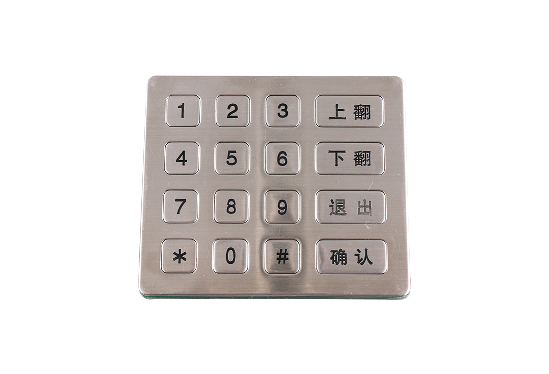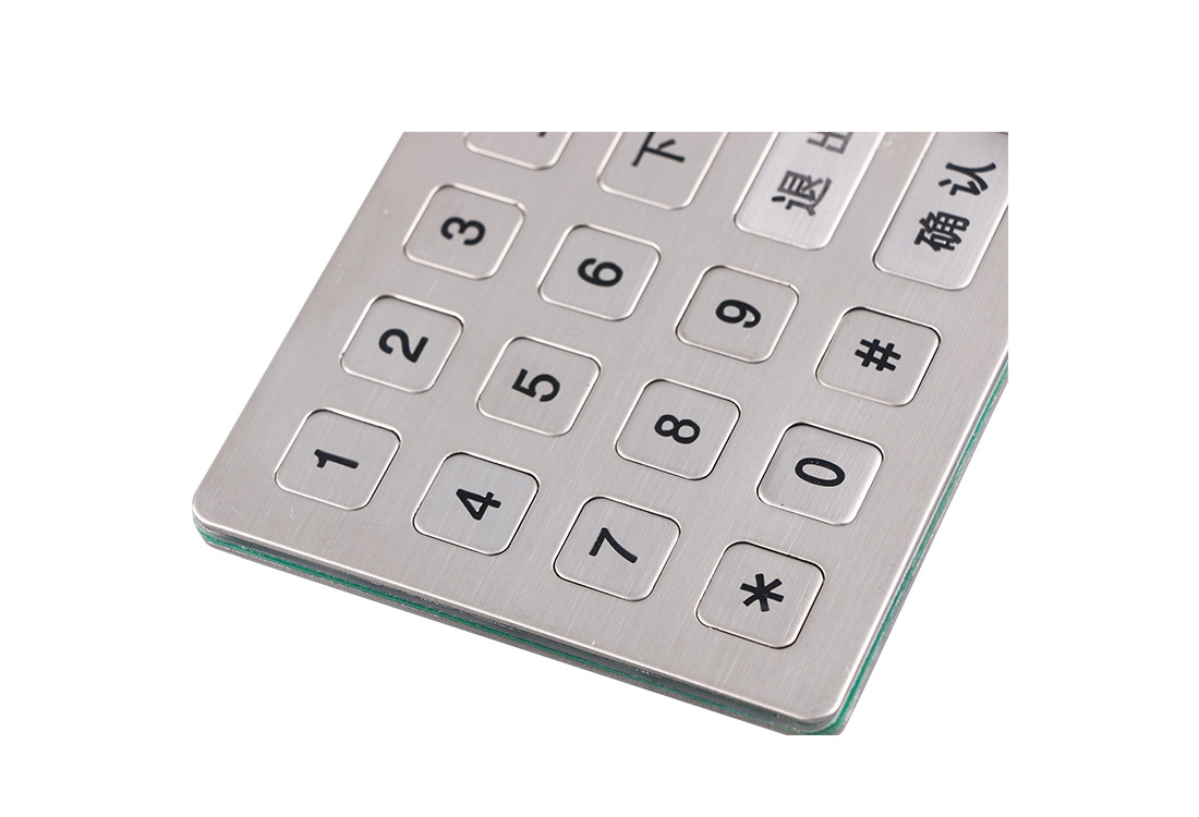 优质进口不锈钢冲压成型键盘,防水、防尘、防暴、防锈,按键字采用激光雕刻或化学腐蚀,防脱落