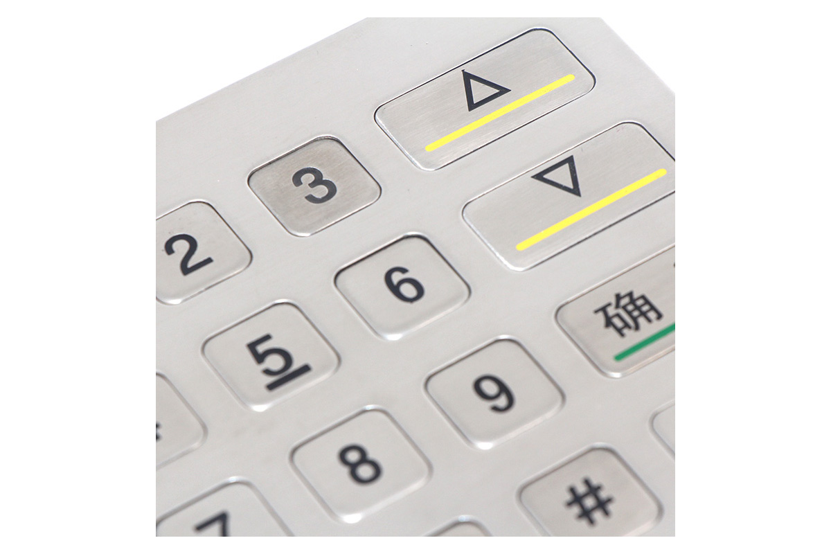 优质进口不锈钢冲压成型键盘,防水、防尘、防暴、防锈,按键字采用激光雕刻或化学腐蚀,防脱落