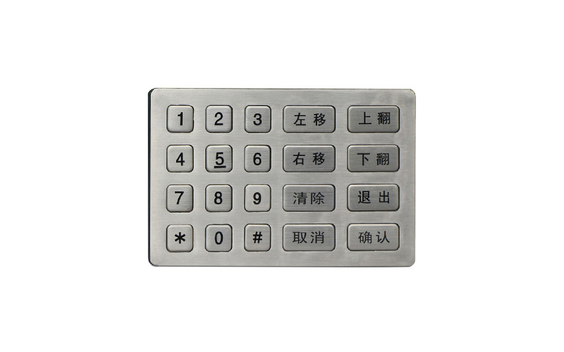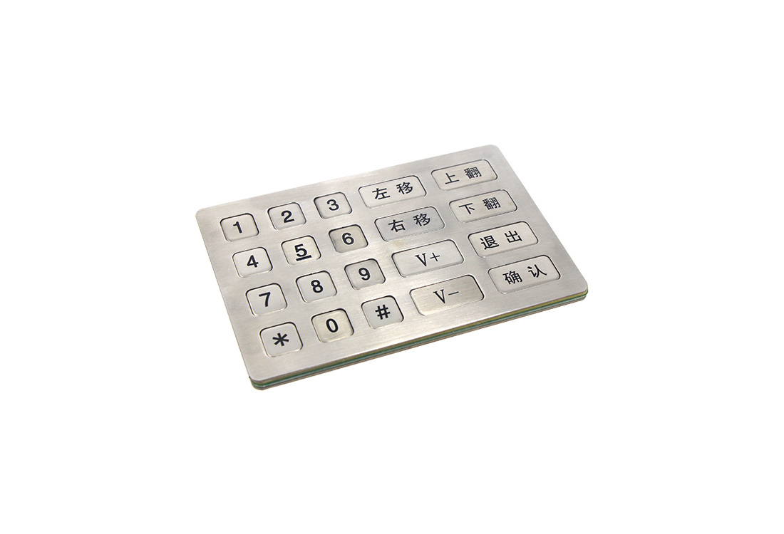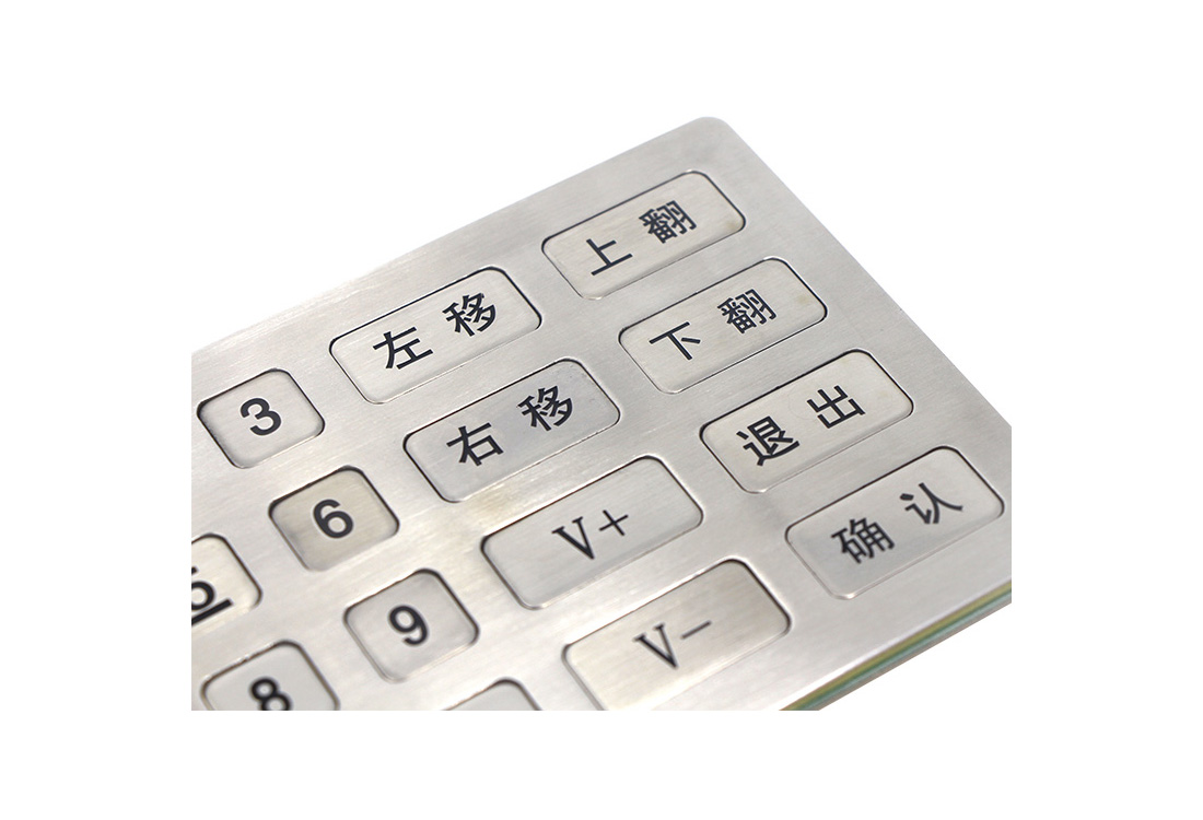 优质进口不锈钢冲压成型键盘,防水、防尘、防锈,按键字采用激光雕刻或化学腐蚀,防脱落