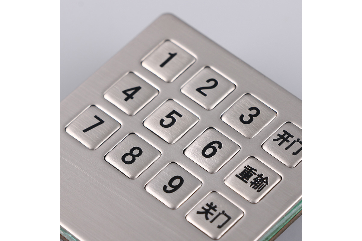 优质进口不锈钢冲压成型键盘,防水、防尘、防暴、防锈,按键字采用激光雕刻或化学腐蚀,防脱落