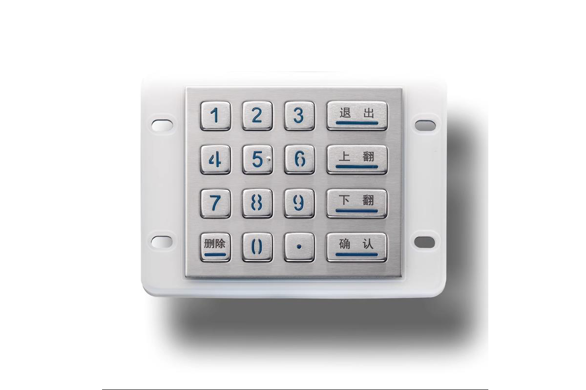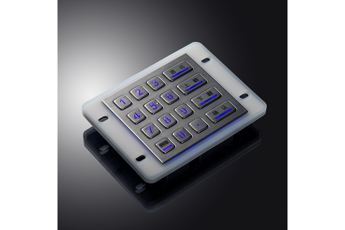 产品描述 | IP68动态防水防尘防暴不锈钢金属工业数字小键盘,带密封和屏蔽的工业级解码控制电路板(USB,PS2,RS232,RS485可选)。16个金属平按键紧凑布局,采用镀金不锈钢锅仔和镀金PCB良好接触的锅仔平按键技术,0.45mm短按键行程, 触感舒适,可进行稳定精准输入。不锈钢背板带安装孔并自带密封圈以利键盘和机柜的全密封加固安装, 嵌入式后安装方式. 带工业级背光(绿色、蓝色等可选)。非常适用于在室外和极端恶劣的环境中作业,表面可直接水管喷射,防水,防油,防尘,防盐雾,防霉菌等。 |