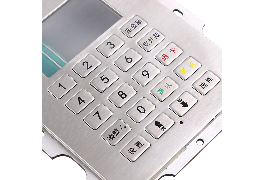 优质进口不锈钢冲压成型键盘,防水、防尘、防暴、防锈,按键字采用激光雕刻或化学腐蚀,防脱落